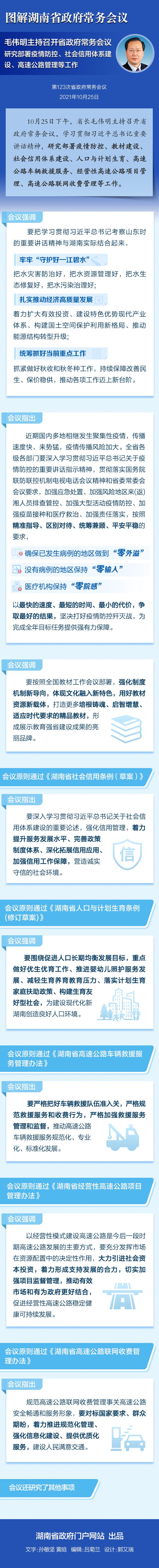10月25日下午,省长毛伟明主持召开省政府常务会议,学习贯彻tapplay官网总书记重要讲话精神,研究部署疫情防控、教材建设、社会信用体系建设、人口与计划生育、高速公路车辆救援服务、经营性高速公路项目管理、高速公路联网收费管理等工作。