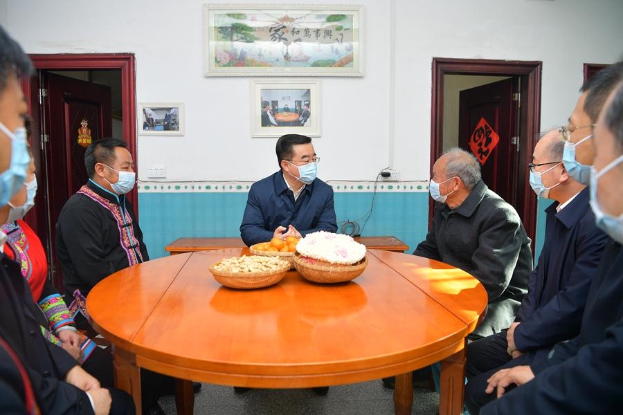 12月2日,在“半条被子”故事主人公徐解秀老人的孙子朱小红家,张庆伟宣讲党的十九届六中全会精神,了解巩固脱贫攻坚成果和推进乡村振兴等情况。