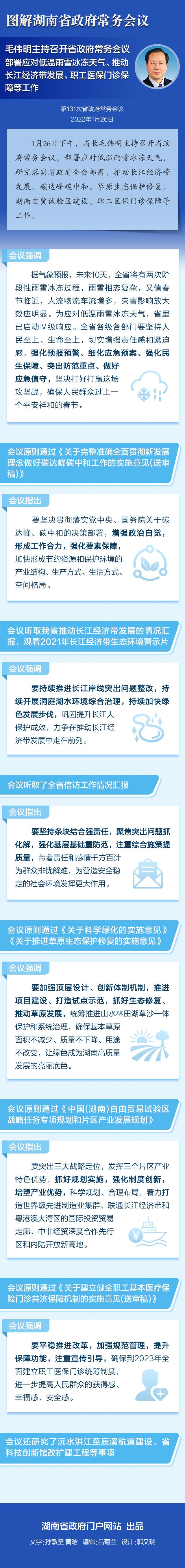 毛伟明主持召开省政府常务会议 部署应对低温雨雪冰冻天气等工作