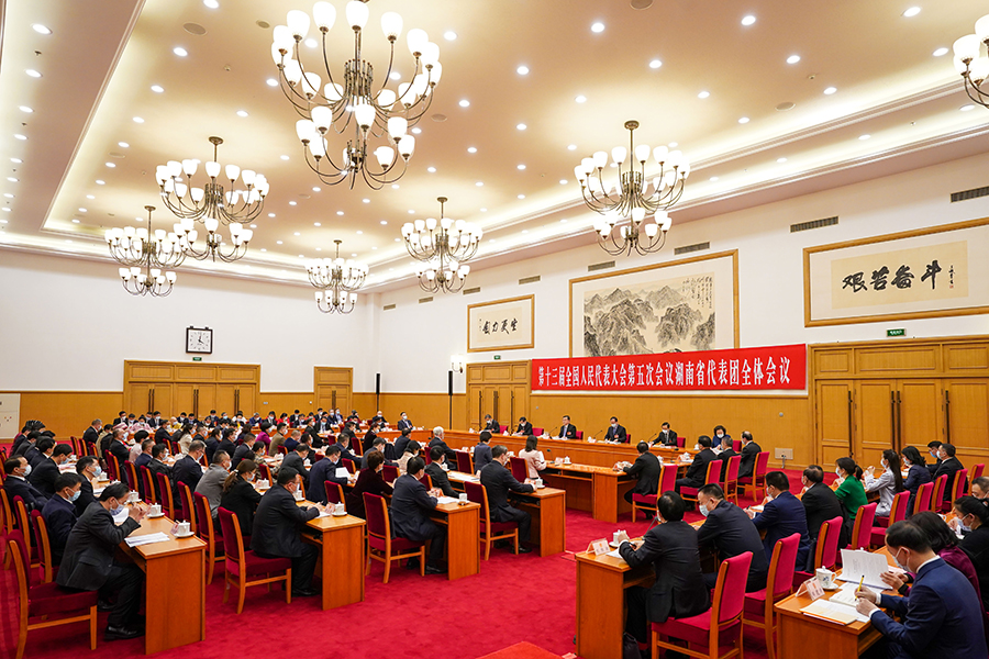会议审议了大会主席团和秘书长名单(草案)以及大会议程(草案),讨论并通过了湖南代表团拟以代表团名义向十三届全国人大五次会议提出的《关于进一步支持洞庭湖生态经济区建设的建议》《关于支持湖南重大基础设施项目建设的建议》《关于支持湖南牵头组建生物种业国家实验室的建议》《关于推动中部欠发达县“比西政策”全面落地的建议》《关于支持岳阳乙烯项目建设的建议》和《关于支持长江中游城市群发展上升为国家重大区域战略的建议》六件建议。