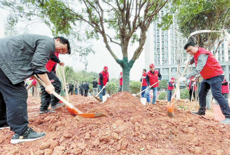 3月10日,在中青路市级义务植树基地,长沙市城管执法局、开福区园林中心等单位共500余人参与义务植树活动。