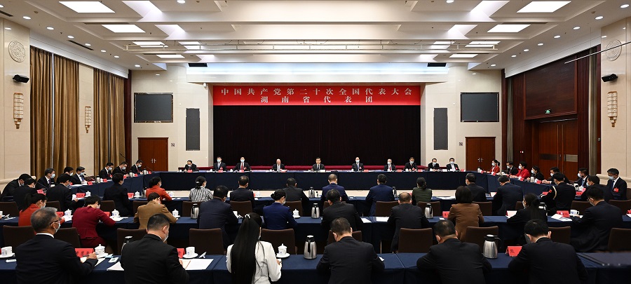 10月15日上午,党的二十大湖南代表团举行全体会议。湖南日报全媒体记者 唐俊 摄