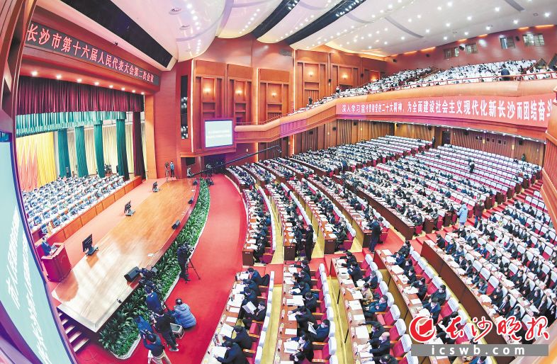 12月28日上午,长沙市第十六届人民代表大会第二次会议在长沙人民会堂开幕。长沙晚报全媒体工作人员 余劭劼 黄启晴 摄影报道