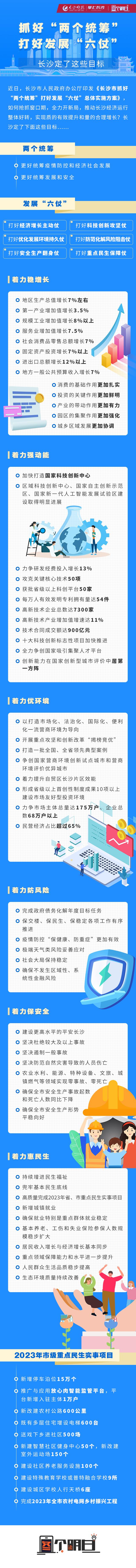 《长沙市2023年推进经济高质量发展十大行动方案》《长沙市加快打造“三个高地”深入实施强省会战略2023年重点任务清单》《长沙市“双五”工程2023年重点任务清单》等文件迅速出台,紧扣全年“三稳”,聚焦发展“六仗”,部署一系列重点举措,推动长沙经济实现质的有效提升和量的合理增长。