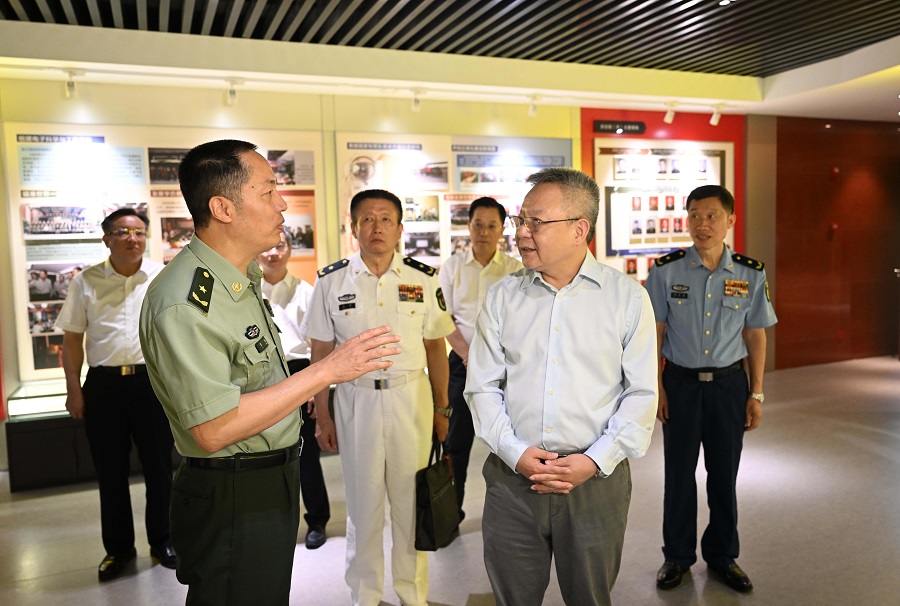 6月12日,沈晓明来到国防科技大学,专题调研科研成果及转化情况,听取学校对深化军地合作的意见和建议。
