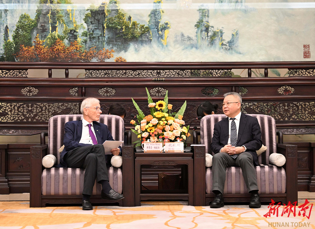 8月25日上午,省委书记沈晓明在长沙与梅塞尔集团股东、监事会主席斯蒂芬·梅塞尔一行会谈。