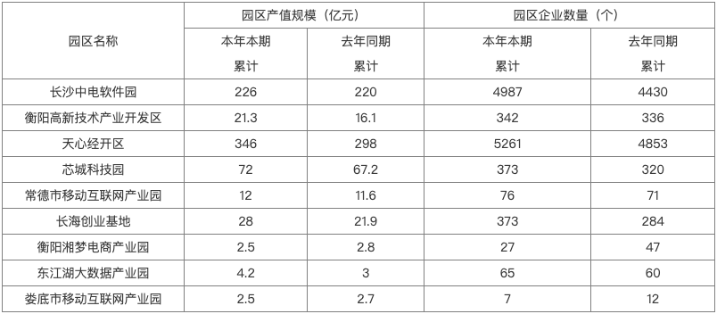 1、重点企业和园区保持平稳增长。1—9月,纳入调度范围的96家重点软件和信息技术服务业企业实现营业收入营收591.5亿元,同比增长9.5%,实现利润总额78亿元,同比增长近20%。1—9月,全省9个重点软件园区实现产值714.5亿元,同比增长11%;企业总数达11511家,同比增长8.9%。湘江新区1—8月实现营收368亿元,同比增长7.5%,新增创新型中小企业88家。长沙中电软件园搭建“三库两池一平台”产业服务体系,1—9月实现产值226亿元。马栏山视频文创产业园1—9月实现企业营收525亿元,同比增长12%;实现税收27.5亿元,同比增长1.51%;完成固定资产投资45亿元;完成重大项目投资36.83亿元。
