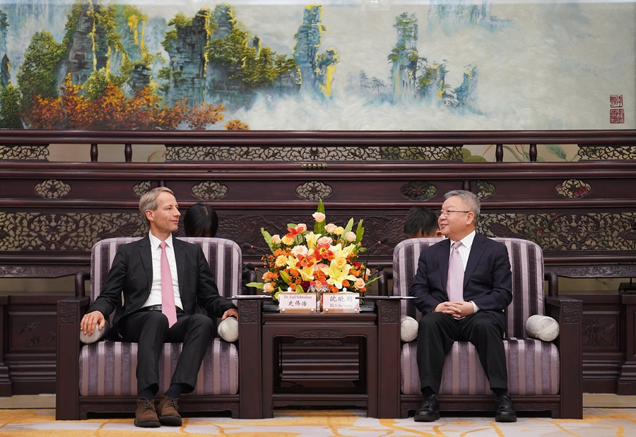 沈晓明代表省委、省政府对史伟浩一行的到来表示欢迎,并简要介绍了湖南经济社会发展情况。他说,湖南全面落实国家“双碳”战略部署,积极推动经济社会发展全面绿色转型,为包括欧绿保集团在内的各类企业来湖南发展提供了广阔空间。希望欧绿保集团充分发挥自身优势,加大资源再生产业在湘投资力度,积极参与湖南绿色低碳循环发展,并帮助吸引更多德资德企来湖南投资兴业。