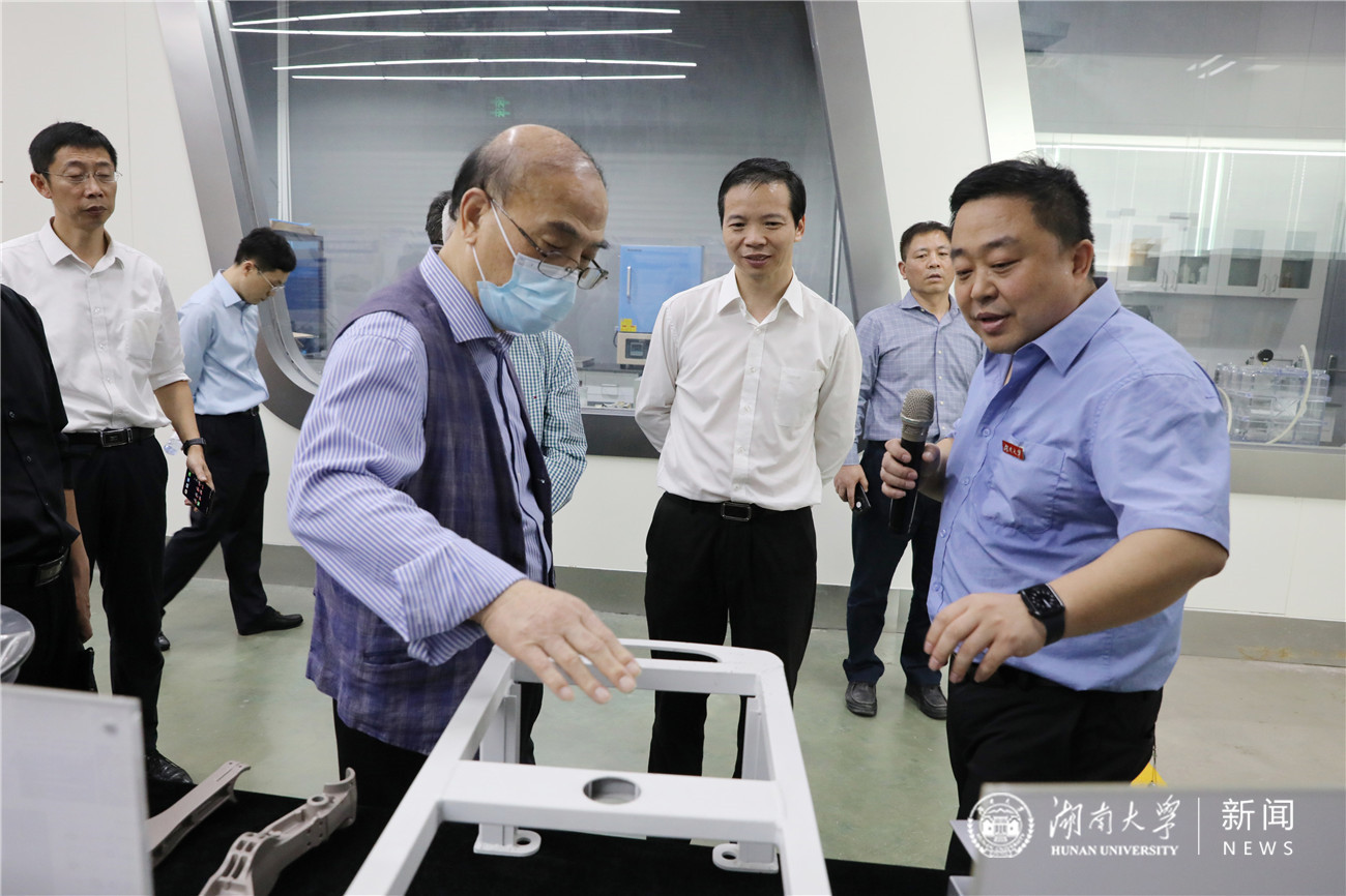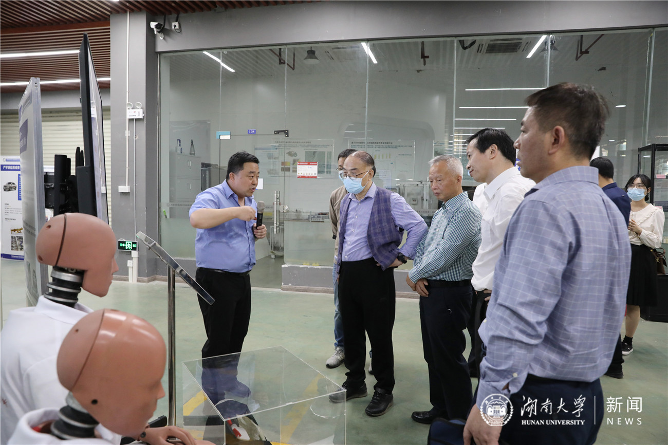 在汽车车身先进设计制造国家重点实验室,刘经南、杨长风院士听取实验室的情况介绍,并了解实验室在智能新能源汽车产业技术等领域的研究进展。